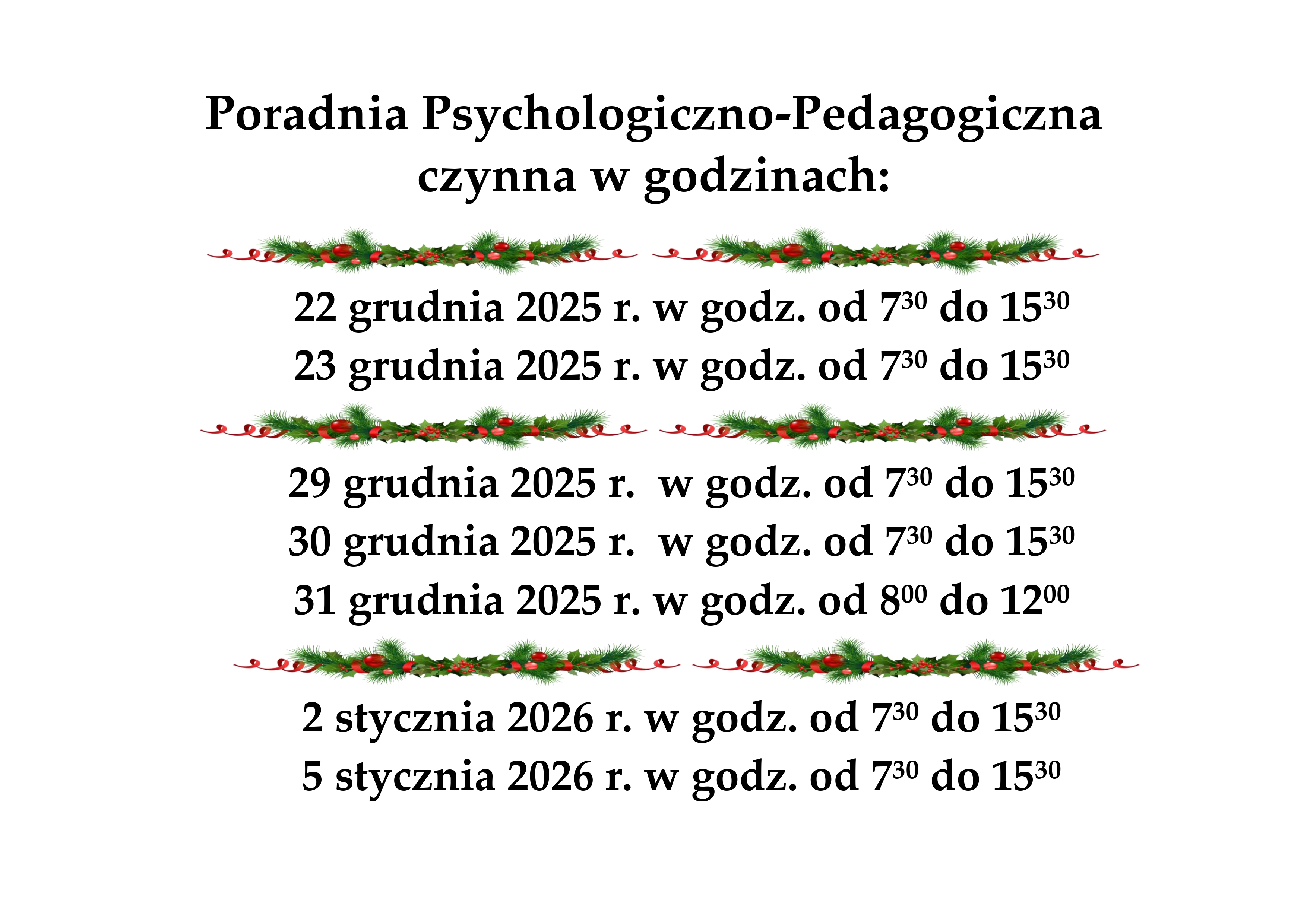 Godziny otwarcia w okresie świątecznym